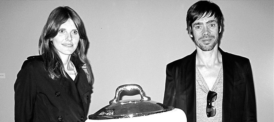 Without changing course, Studio Job had put together a whole collection featuring a low cabinet with two doors closed with a huge gilded key; a desk with drawers that open by pulling a gilded, aluminium, nose-shaped knob; a table; and a lamp with a jumbo switch.