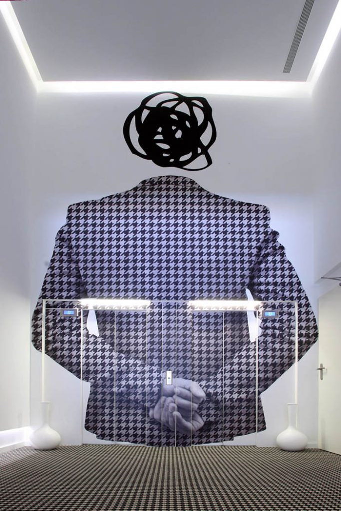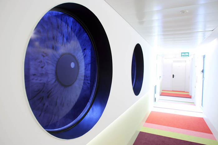 The floor of the corridors of each floor is treated in a different way. Different colors carpet strips are used in order the visitor to understand the transition from one space to another space.