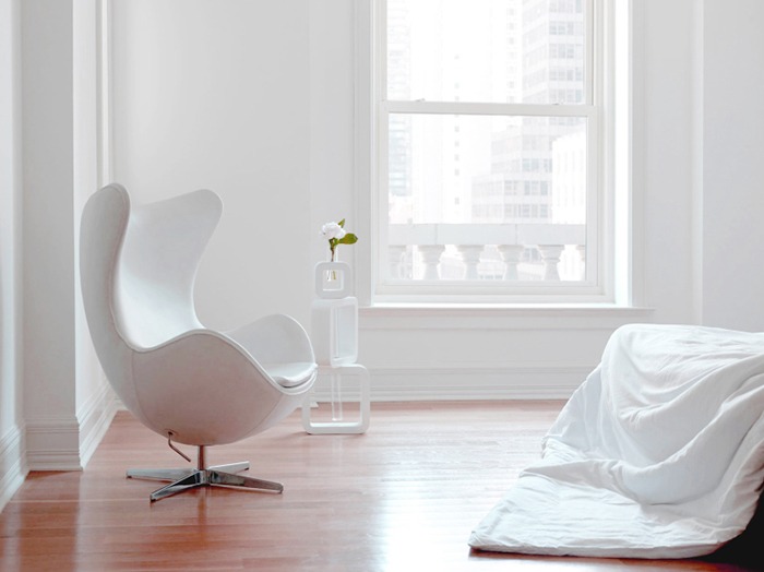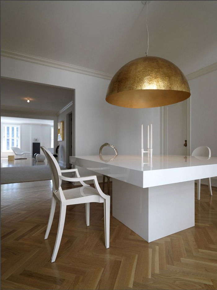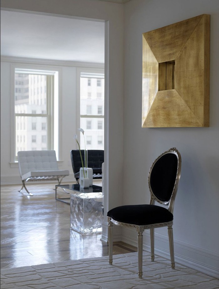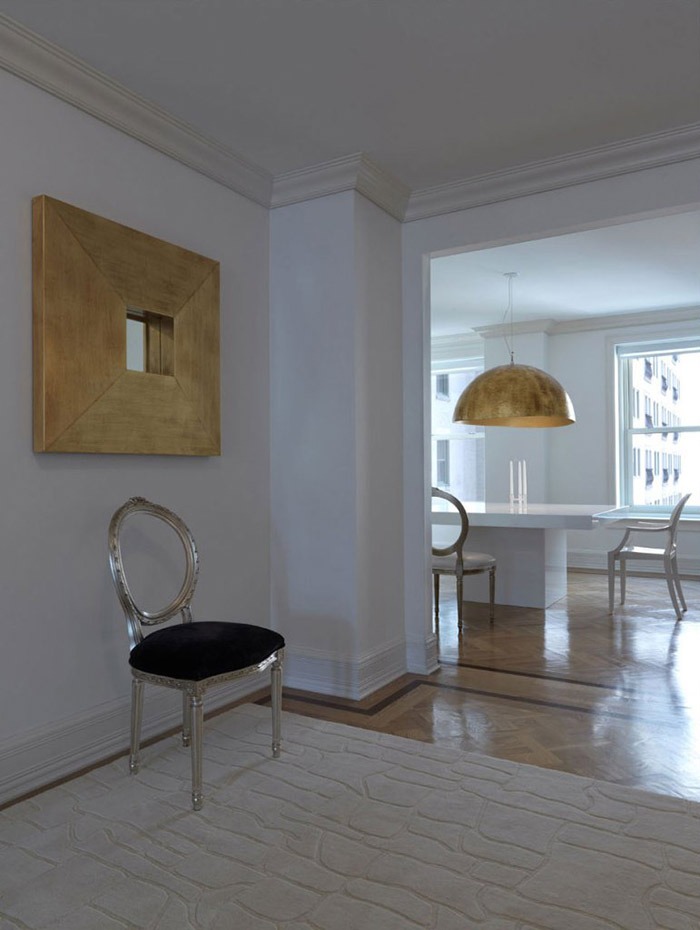 Conceptual Minimalism and total whiteness, as if we were tiptoeing through the space and then clapping our hands now and again; echo comes in the gilded lamps and mirrors that hark back to an opulent past and serve as a reminder of the building origins, when it was the trendiest hotel in NYC.