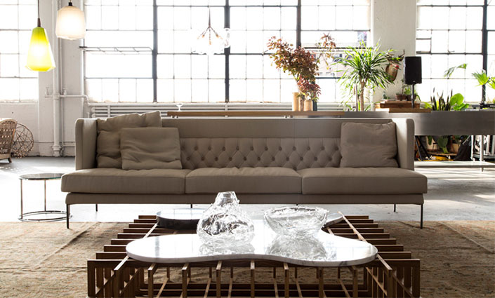 In collaboration with brooklyn-based creatives, lissoni has included the work of local practices within the industrial loft dwelling, comprising pieces from the collections of token, fort standard, snarkitecture, bec brittain, bower, avandi, assembly design, patrick weder, townsend design and PELLE.