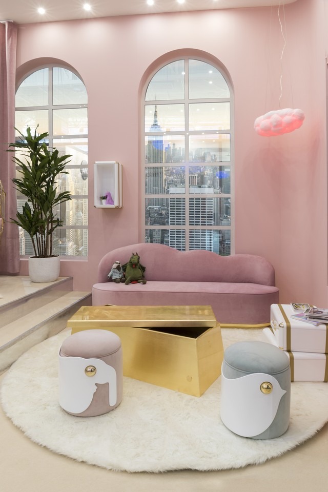 With the use of geometric shapes – such as the design of the rug and the beds – the decor of the room brings so much light that it’s complemented by luxury pieces such as the Cloud Bench – as soft as it seems- and the Cloud Chest of Drawers, that is a storage favorite for those who love unique design pieces. When it comes to children’s interiors, these stools introduce a modern design, always ensuring that the bedroom reflects the child’s personality and is both fun and young.